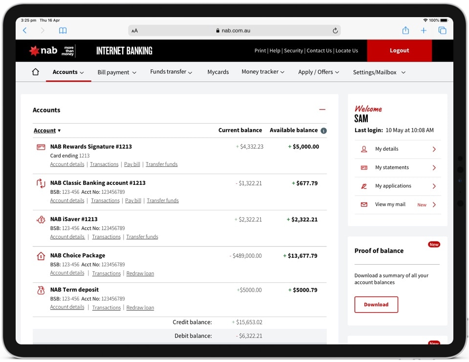 Login to NAB Internet Banking.