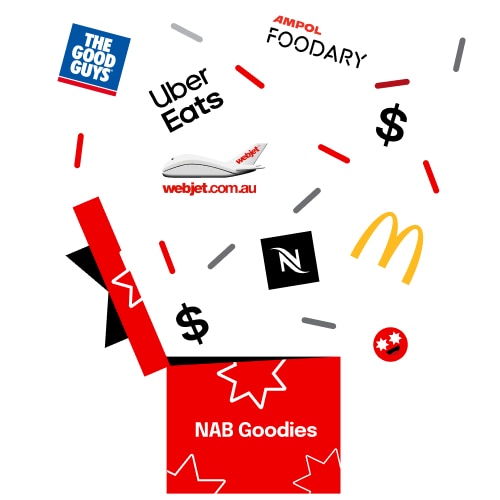 Find personalised cashback offers and discounts in NAB Goodies in the NAB app , and look out for surprise offers in your inbox.
